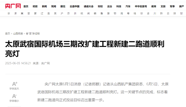 媒体聚焦 | 京航安助力太原武宿国际机场新建二跑道顺利亮灯